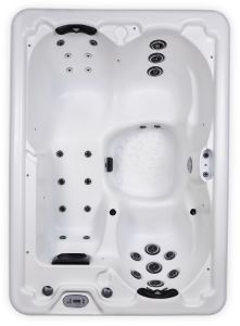 The Heirloom series Aurora model is a compact yet luxurious two-person hot tub that fits perfectly in small outdoor spaces. Whether you prefer to stretch out in the spacious lounge seat or sink into the captain’s chair for targeted relaxation, this hot tub delivers powerful hydrotherapy in a conveniently small package.